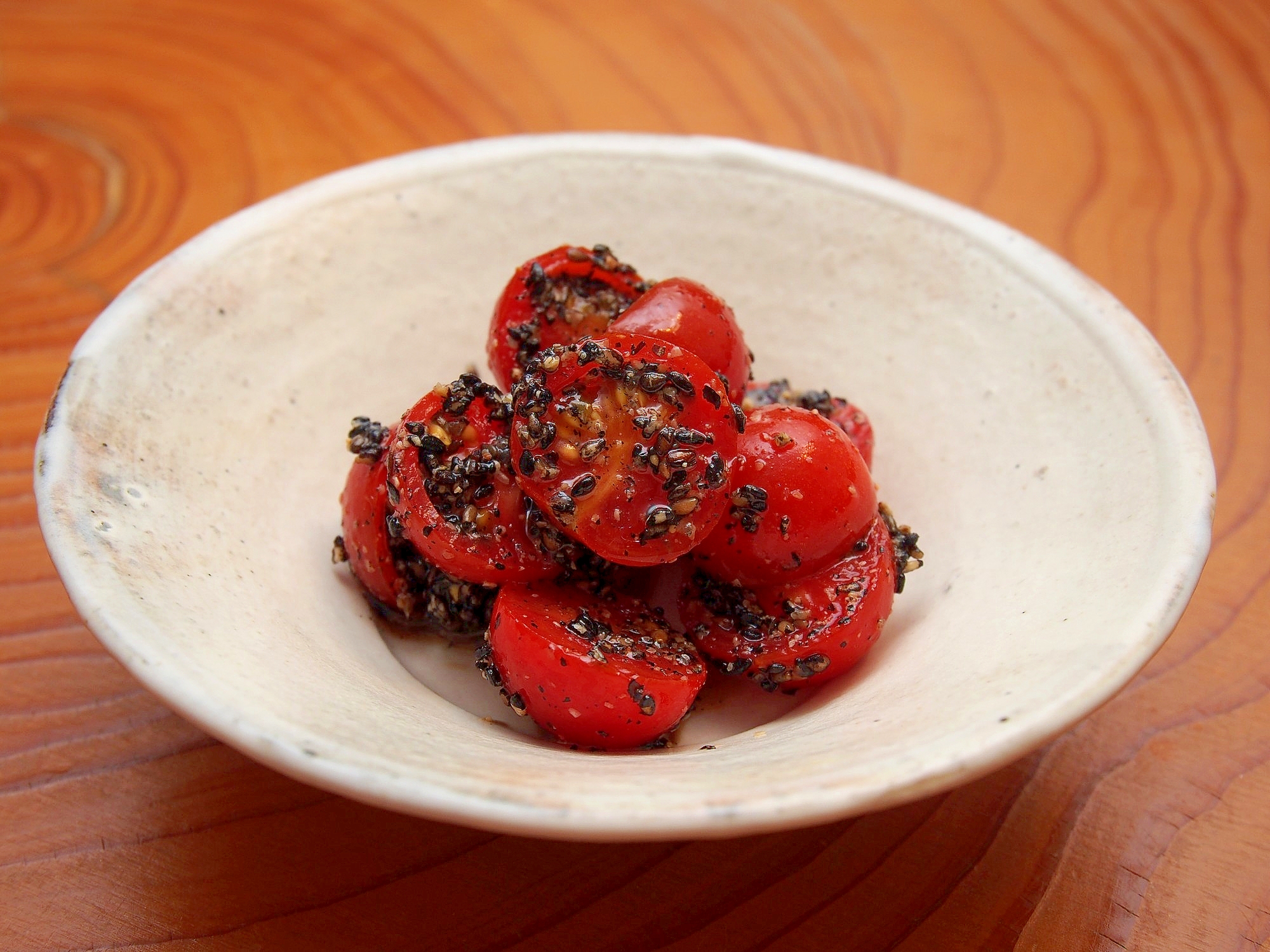 簡単 便利 お弁当にも ミニトマトの胡麻和え レシピ 作り方 By 鶏のから揚げ 楽天レシピ