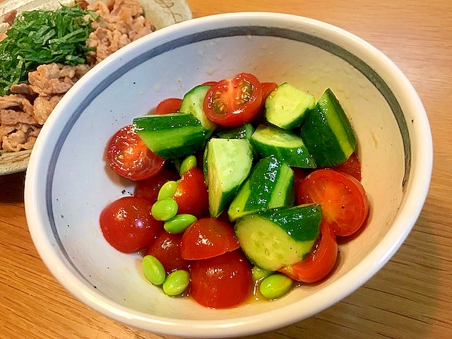 ミニトマト きゅうり 枝豆の夏サラダ レシピ 作り方 By Chayank ちゃやんく 楽天レシピ
